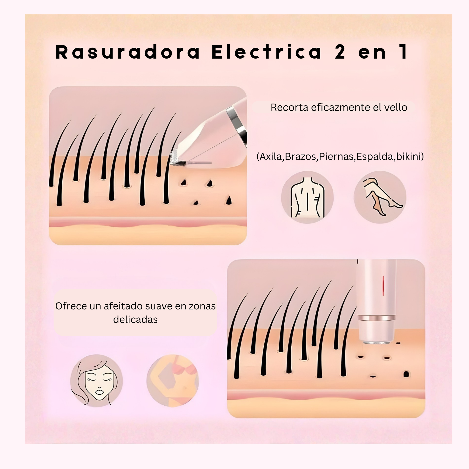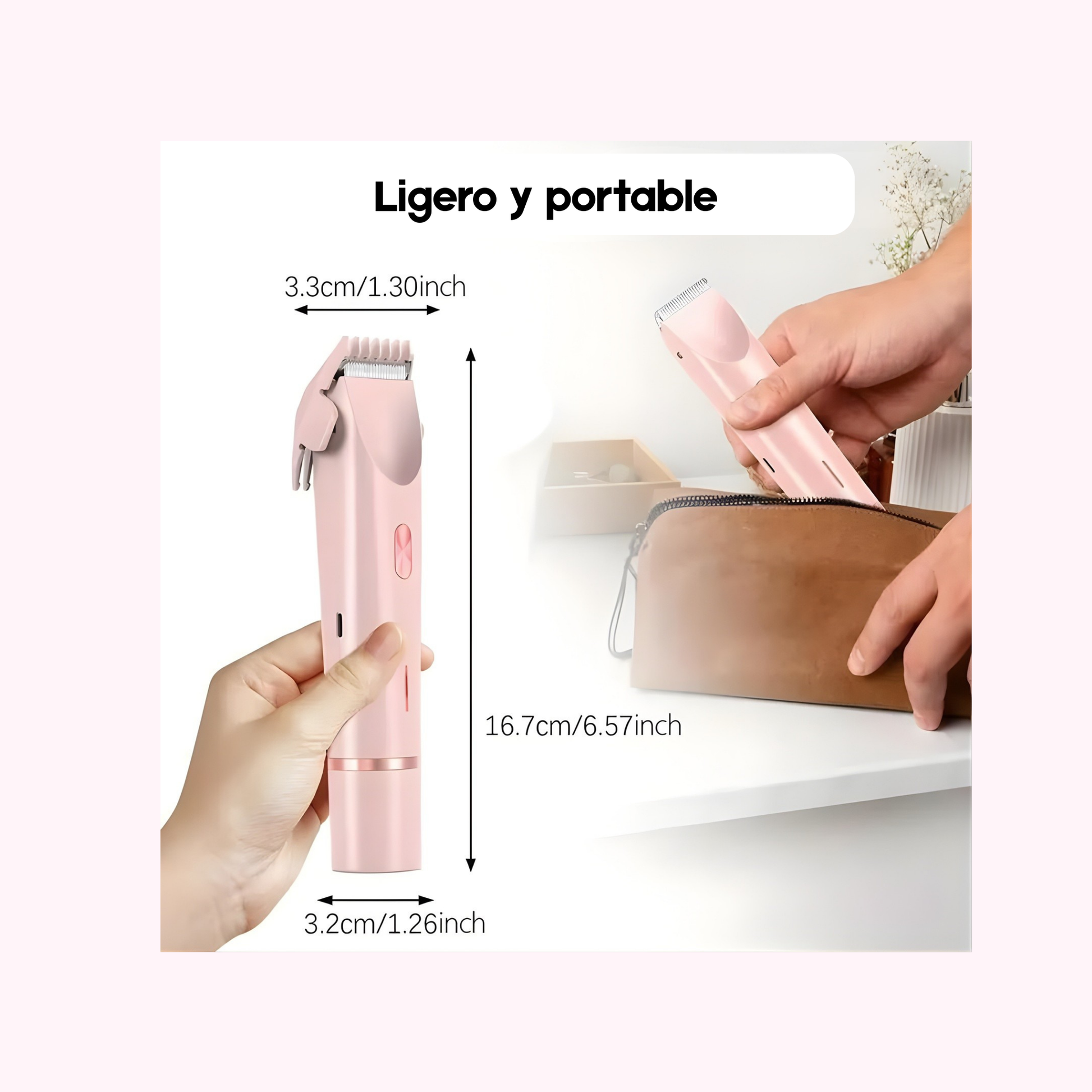 Diseñada para piel sensible, esta rasuradora eléctrica 2 en 1 elimina el vello de rostro, axilas, piernas y zona bikini con suavidad y precisión. Es portable, tiene batería de larga duración y se puede limpiar fácilmente ✨